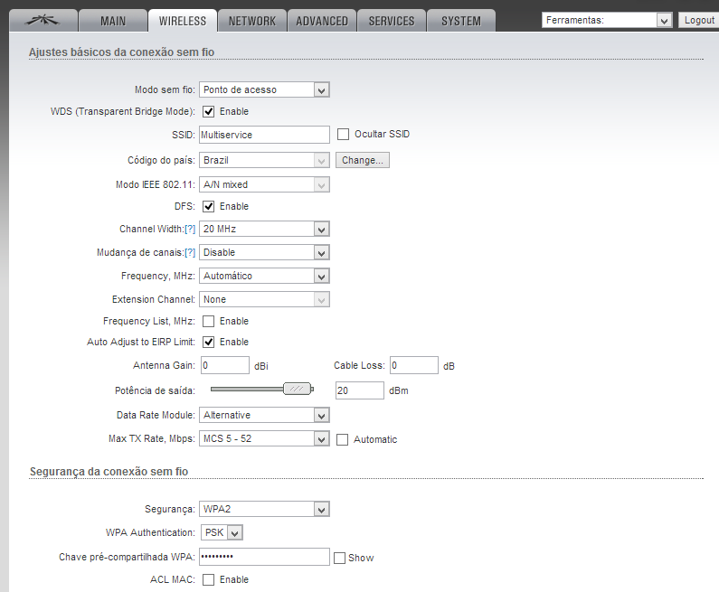 Depois vai testando Canal pra ver se melhora o Sinal pra -60.