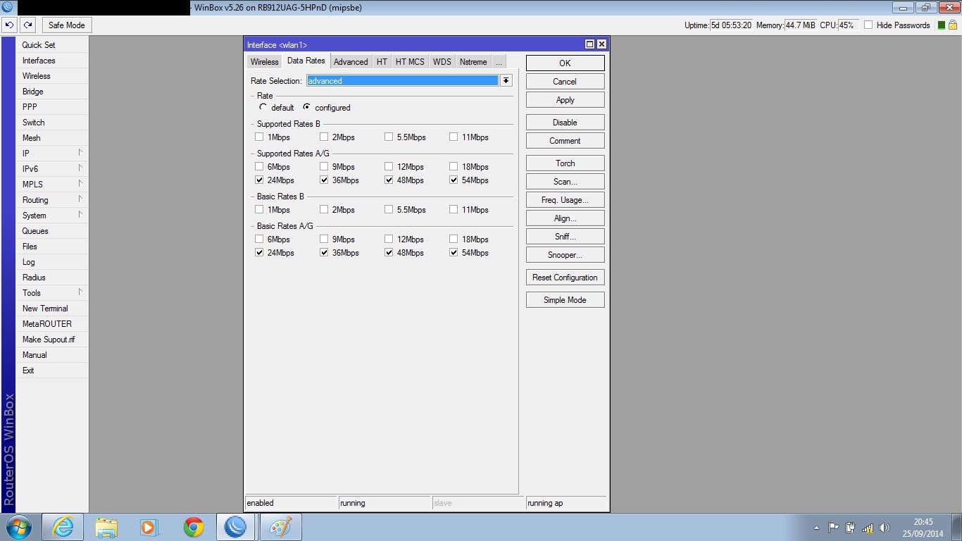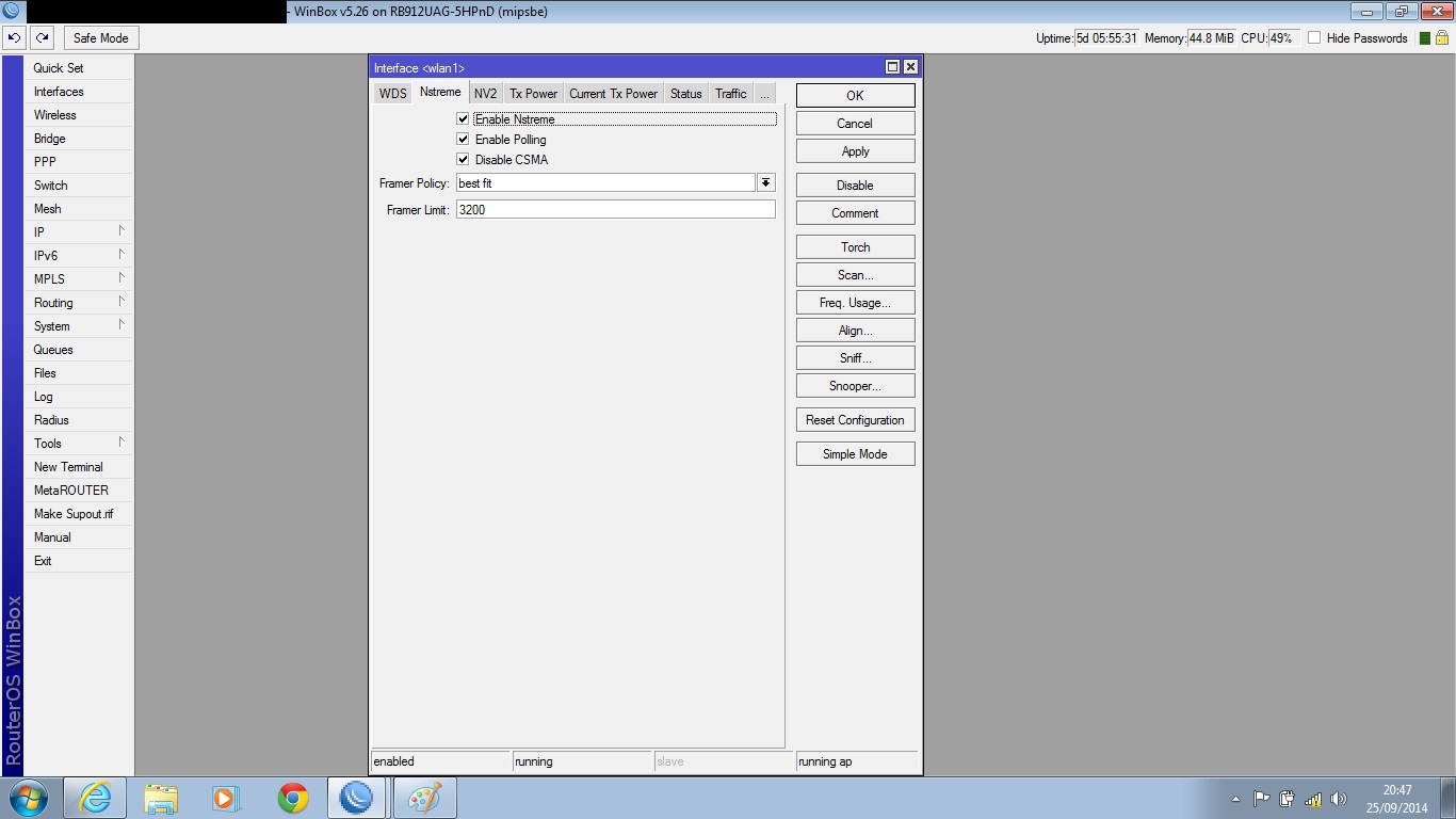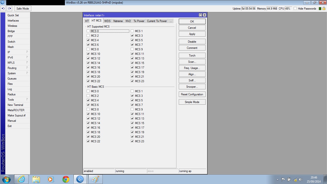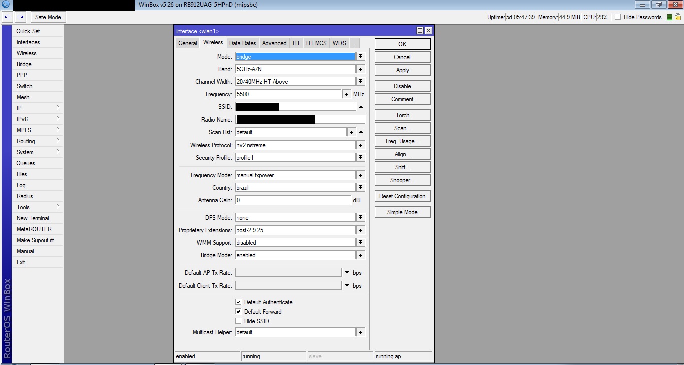 Realizo teste tcp tranquilo, mas basta por pra rodar teste de UDP Both o ccq de um das chain cai pra 60% e mcs dela vai junto e nao volta mais até reiniciar a rb. Quando isso acontece a banda vai la pros seus 30mb
