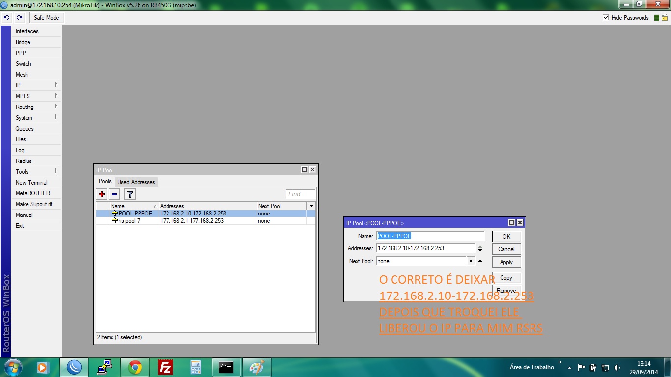 A caixa de baixo serve para adicionar outras faixas de IP no mesmo POOL.