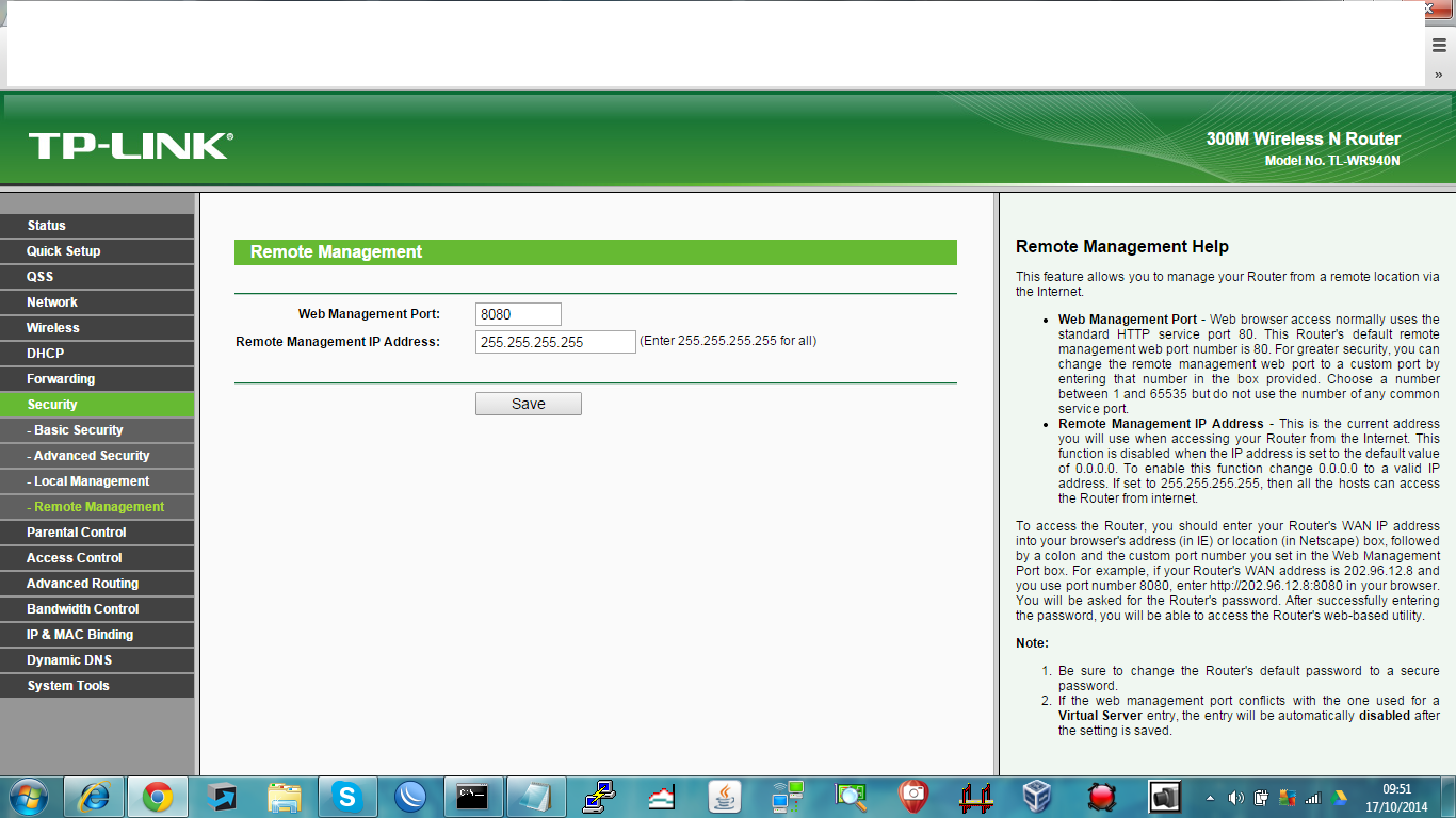 quando acesso o ip pela porta especificada no roteador nao funciona, estava na porta padrao do roteador 8080, mas para teste, troquei e mesmo assim nao deu certo!