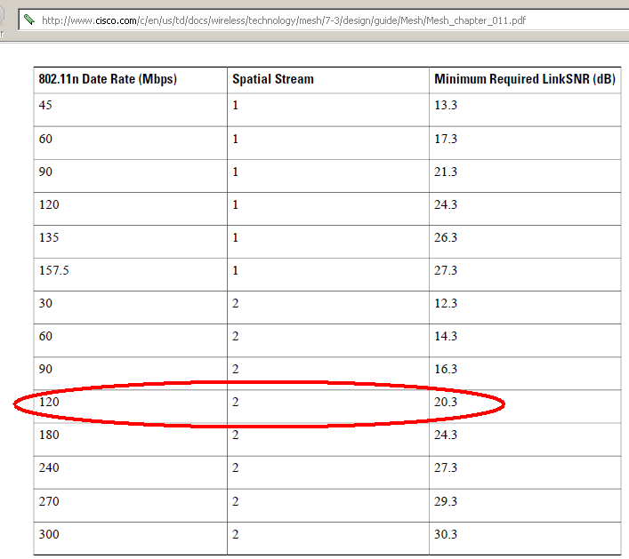 Essa tabela é pra 40MHz, mas 120M em 40MHz ou 130M em 20MHz dá praticamente na mesma em materia de sensibilidade e snr requerido.