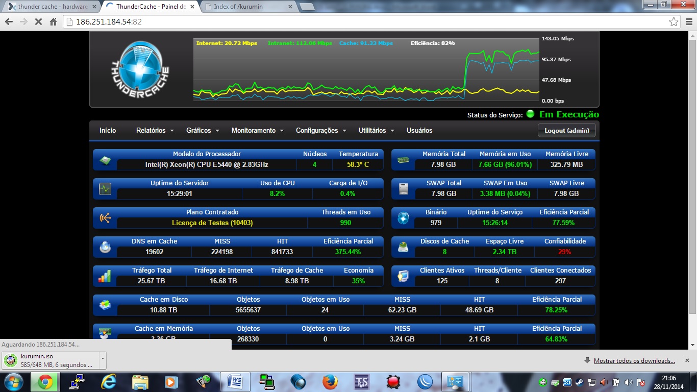 Estamos pensando em trabalhar com planos maiores aqui em fibra 5, 15, 25, 50, 100 Mega bits mas com esse rendimento pobre do thunder cache nem pensar