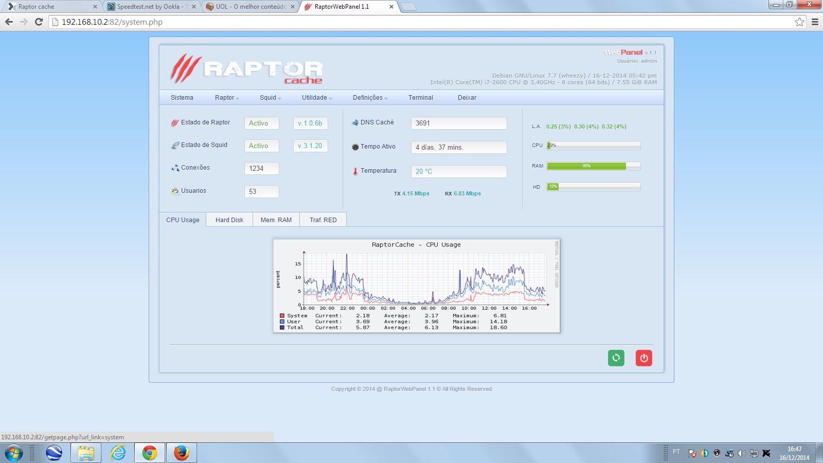 Estou com o raptor rodando novamente!, saiu a versão 1.0.6 e o webpainel 1.1