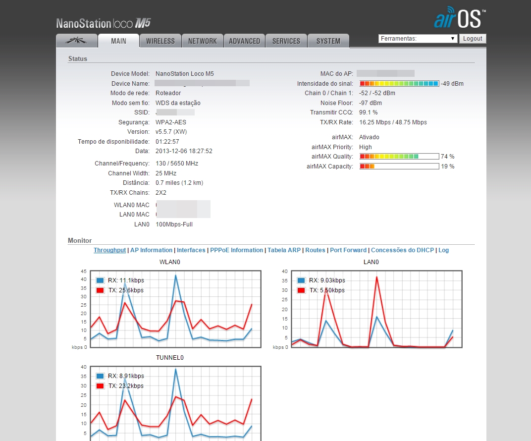 Eu supus que era omni dual já que conseguiu ativar airmax, e na imagem mostra sinal -52/-52.