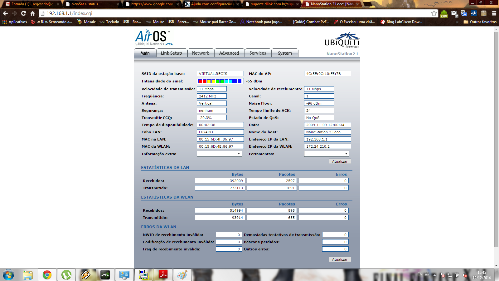 Um sinal -65 não devia ter CCQ de 20% NUNCA. Reveja a visada, parece algo errado na parte física da instalação, não em configuração.