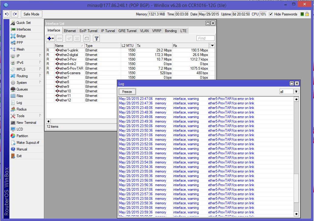Troquei a minha RB 1000 por uma RB CCR1009-8G-1S e uma linha azul aparece constantemente com a mensagem: