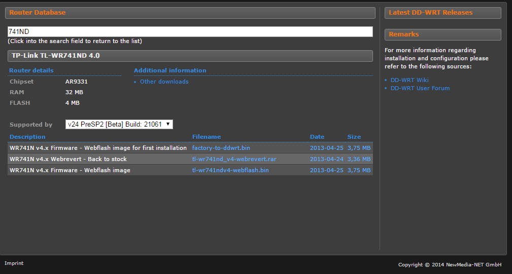Eu suspeito de problema em versão do hardware. Em 2012 e 2013 comprei meia duzia de 741nd cada vez e tentei DD-WRT. Em 2012 eram daqueles 741nd quadrados, o site survey nem exibia nada, não consegui fazer funcionar como cliente. Era V1.1 ou algo do tipo, no forum falavam em sucesso, mas sem citar versão.