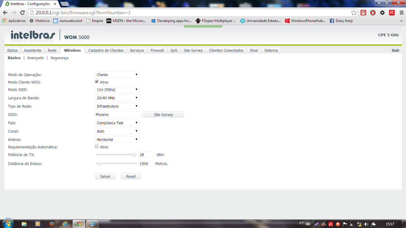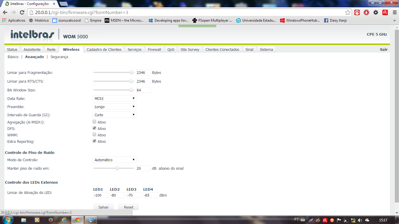 as configurações estão batendo certinho com as minhas tirando a potência que alterei! Você consegue passar 100MB nesse seu equipamento? Creio que vou deixar uma folga de 100 metros no enlace do meu rádio! Depois também vou checar se não á danos no cabo de rede, pois que pelo que me parece era para estar passando uma taxa de velocidade mais alta aqui!