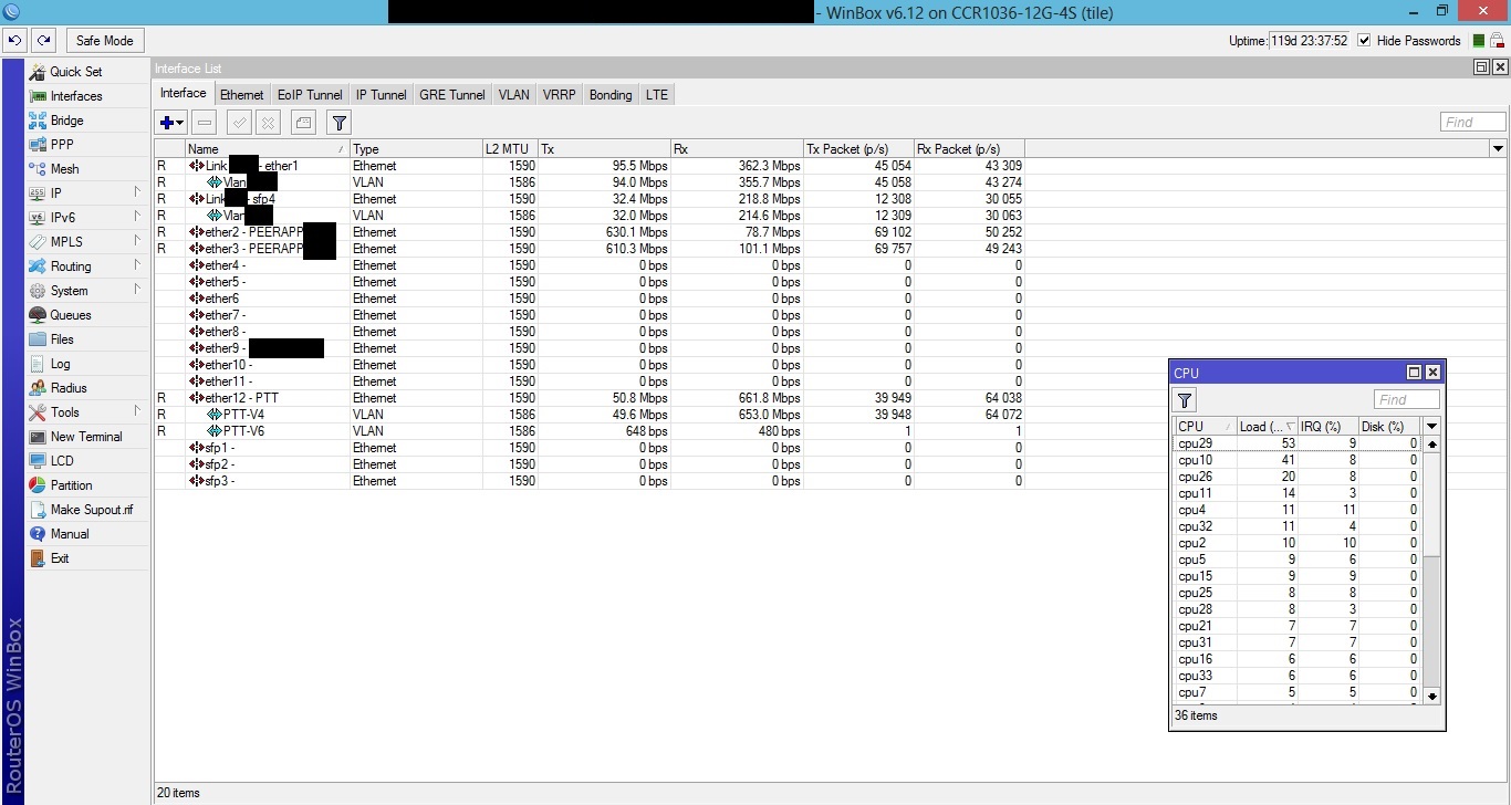 Qual o valor do seu treinamento??? como faço para obter mais informações??? Hoje tenho bgp com duas operadoras 300Mbs, porem meu trafego não passa de 130Mbs em media e meus clientes reclamando de lentidão o tempo todo. E as reclamações começaram depois de coloquei uma ccr 1036 na borda, antes usava uma 1100 AH-X2, mais tive q trocar por que bateu 100% de processamento.