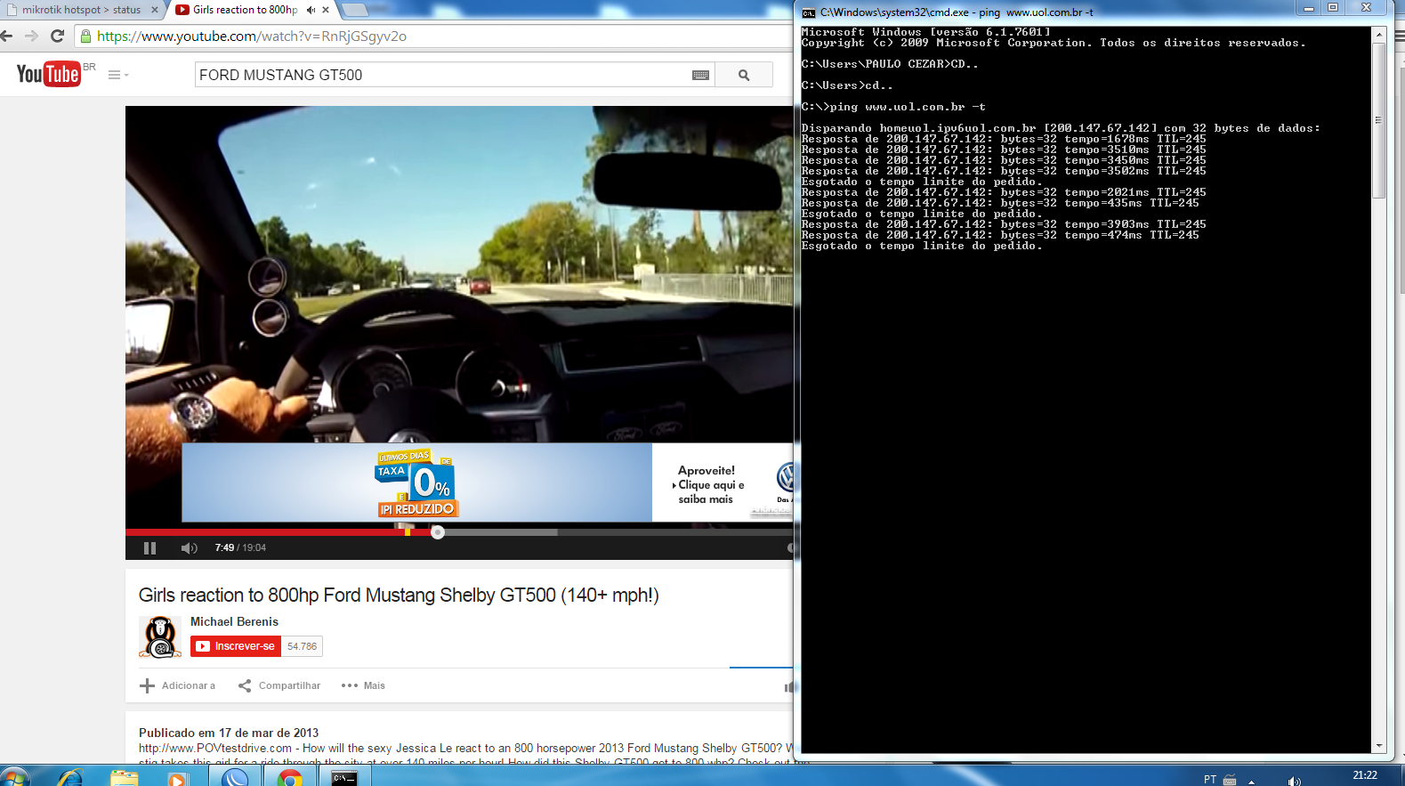 No entanto, após algum tempo de uso 10 minutos ou mais a conecxão cai e demora um pouco voltar! vou enviar três fotos para voces analisarem!!