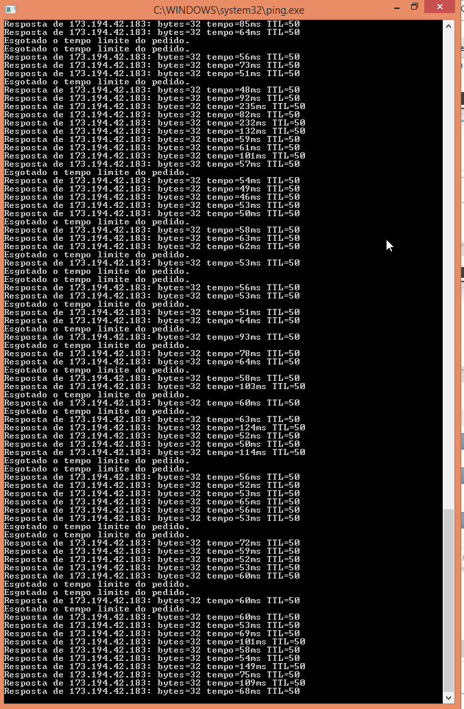 Sobre o ping, não será outro problema? Saturação de link, rota, PTT, etc? Tente efetuar um ping até o seu ISP para ver se há perdas.