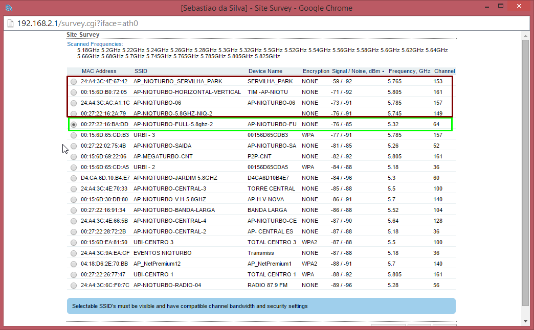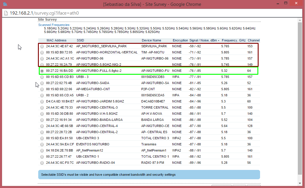 Rubem , troquei de sinal , Tirei do AP_NIQTURBO_SERVILHAPARQUE e coloquei nesse AP-NIQTURBO-FULL-5.8ghz-2