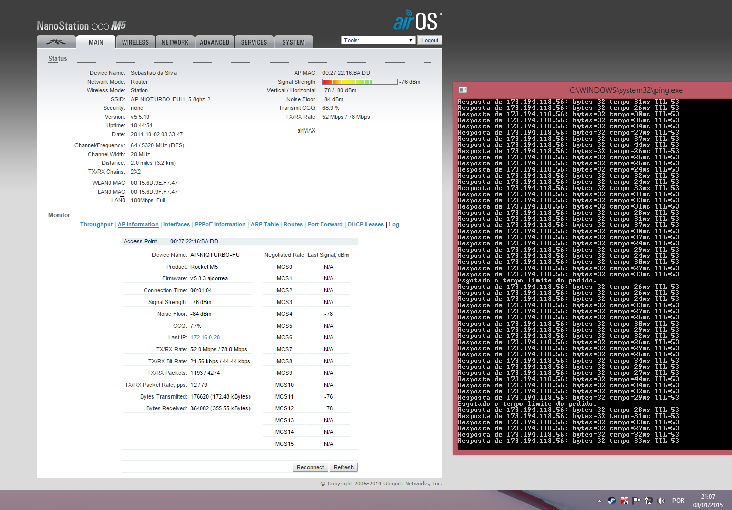 A falta de agilidade do modo auto está no ping, se baixar pra MCS9 ou MCS11 fica claro que o software está com datarate acima do que devia. E porque o software é tão pouco ágil? Porque ele se for em datarate alto, o maior possível, afinal mesmo com 2 ou 3 perdas se pode ter um throughput alto. Pra navegação isso é péssimo, mas pra um download a longo prazo pode compensar. Como a princípio provedor wifi vende conexão quem apenas navega, acho mais útil ter throughput baixo mas 100% estável (Ping estável, ou seja, sem jitter. Teste ping -l 1400 também pra verificar), do que ter 2 perdas de ping a cada meia duzia de pacotes ok.