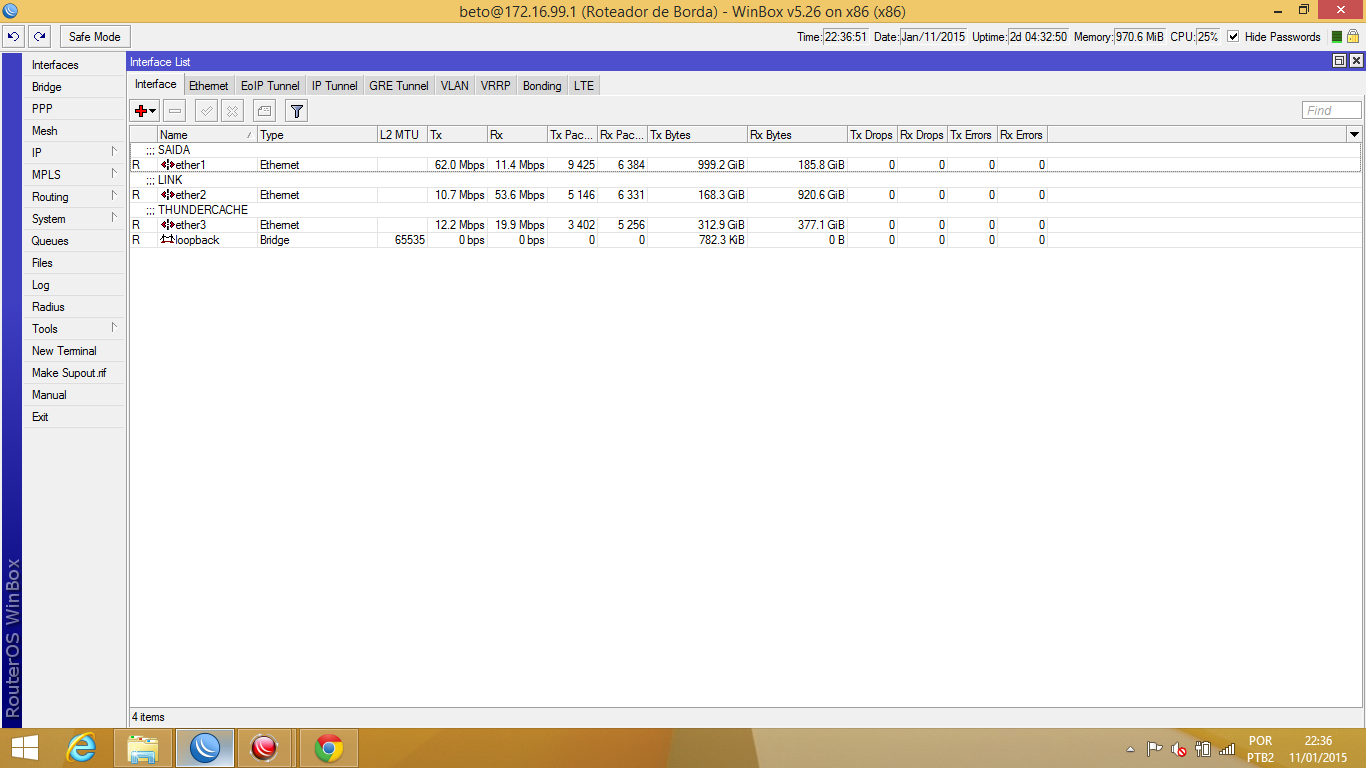 Mikrotik de Borda Versão 5.26 rodando 80 Megas de Link dedicado