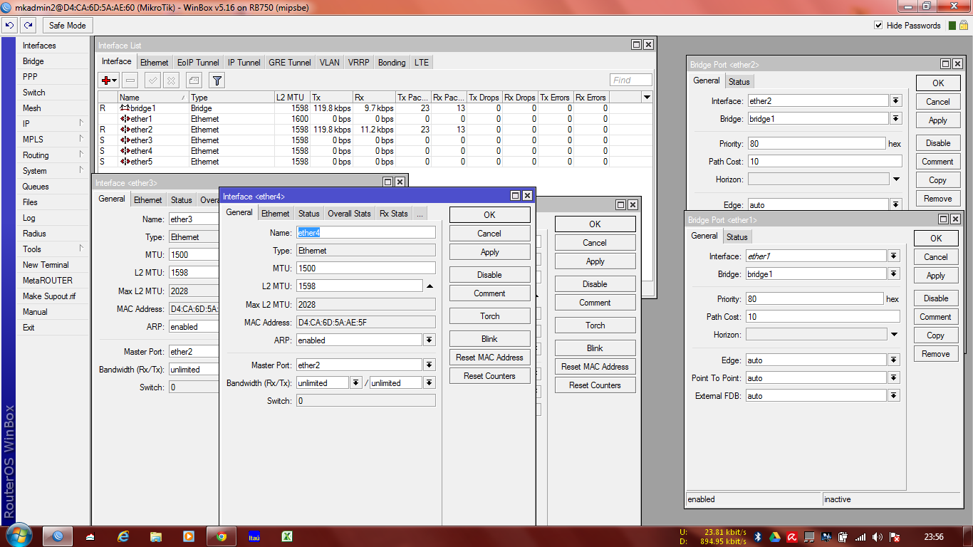 Pessoal, estou tentando configurar outra RB 750 como switch, já tenho outras RBs 750GL com a mesma configuração, só que quando tento colocar a interface em master-port aparece esse erro: