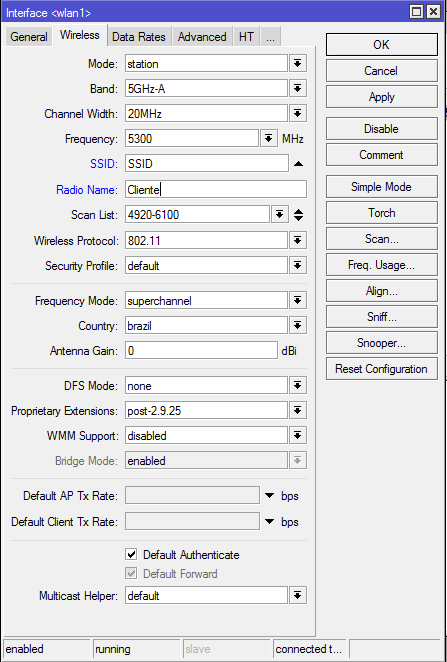 Configurei a parte de Wireless como Station e enlaçou certinho, então não vou detalhar muito essa parte aqui.