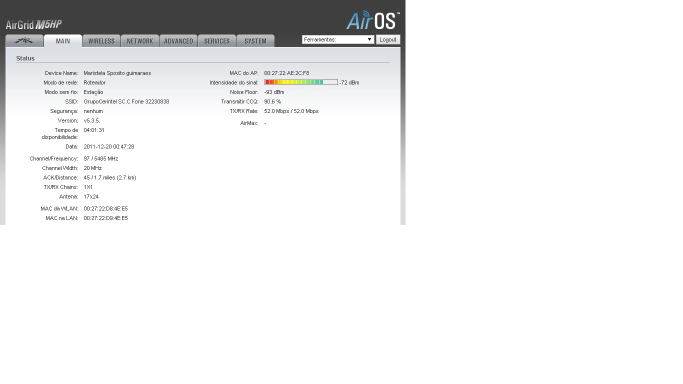 -72 é sinal meio baixo pra datarate de 52M, pra datarate assim o provedor devia trabalhar com sinais entre -60 e -70.