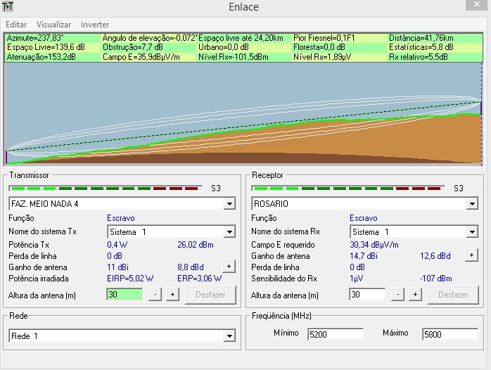 Mais uma vez muito obrigado pela ajuda... só mais uma coisa, no exemplo da imagem em anexo usando uma rocket m5 + antena 33 dbi seria possivel chegar uns 5MB? outra coisa o que quer dizer aquela nomenclatura 'S3' no radio mobile? e as linhas brancas?