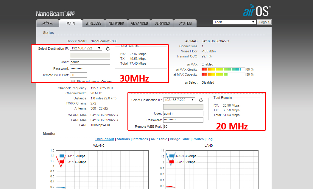 Pra ser sincero não vejo como conseguir mais que uns 30Mbps em dararate de 60M. Então ter 27Mbps não é tão ruim pra esse datarate.