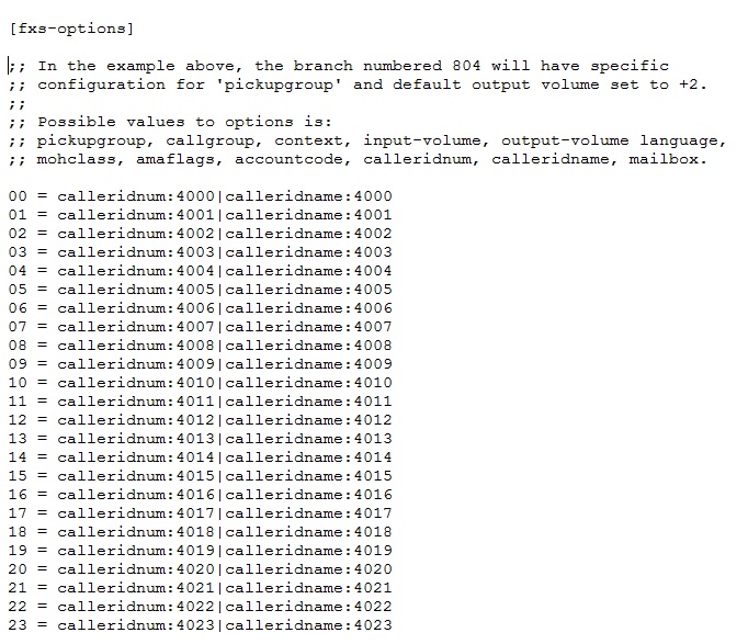 Cofigurei os ramais como 4000,4001...... o range de ramais você configura conforme sua definição.