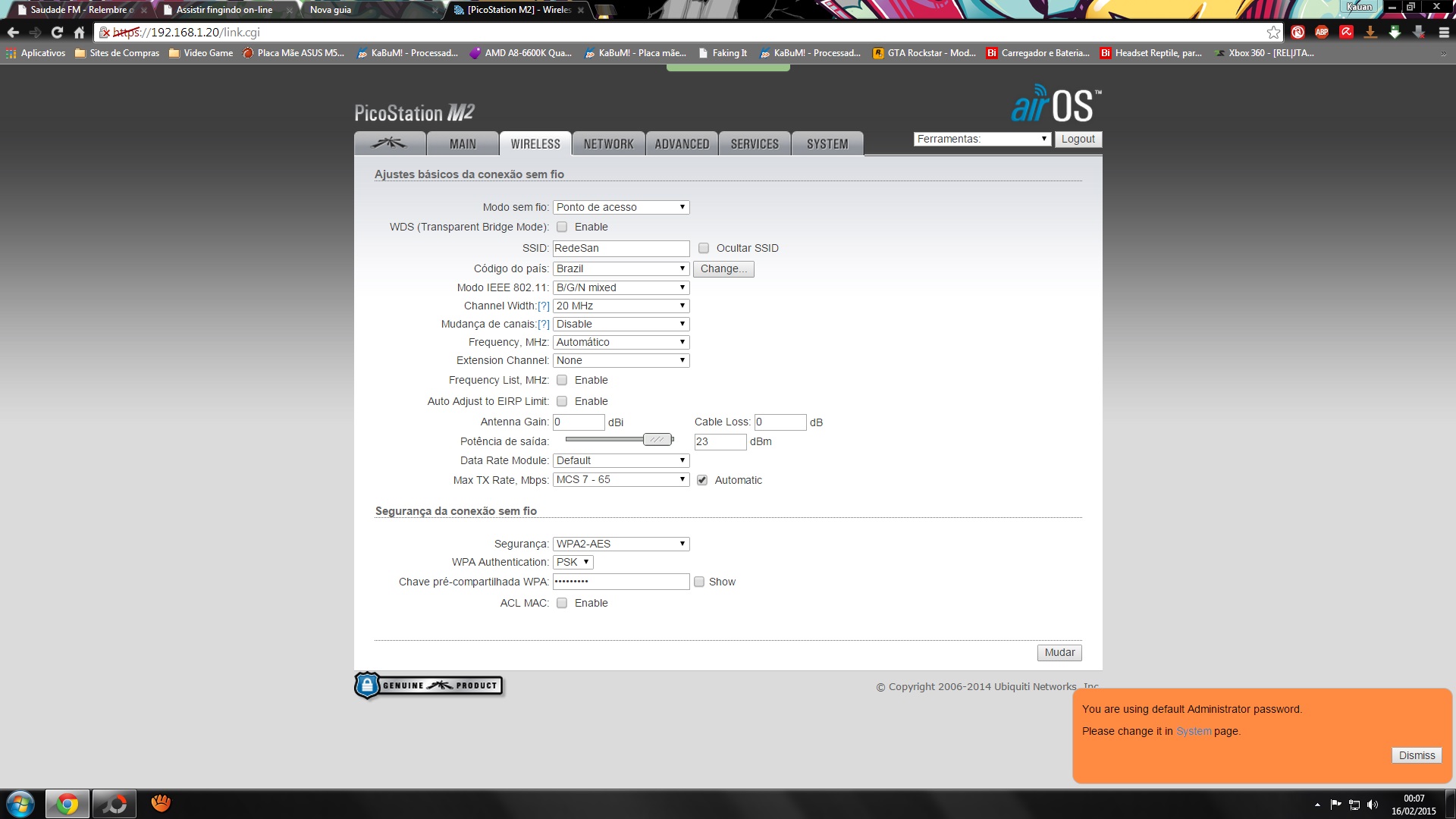 Gostaria que alguém me ajudasse a configurar meu router pico station m2 hp pois quando o configurei ele funcionava perfeito depois do nada não funciona os 100% ta abaixo só filca no led vermelho,como eu uso para servir sinal de wifi para usuarios de celulares notebooks e etc...,alguns se o sinal era 4pontos caiu para 1 e da maioria o a rede nem aparece.