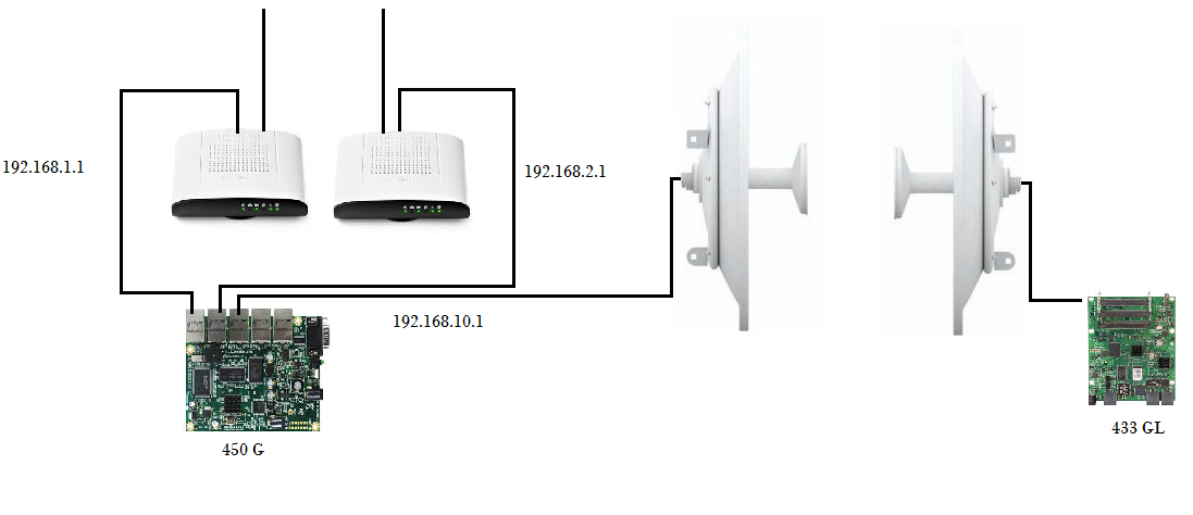 eu gostaria de dividir os dois link, por exemplo: quero enviar o link 192.168.1.1 e quero enviar o link 192.168.2.1 para minha central, para quando chegar na minha central eu poder dividir, quero colocar esse link 1.1 em uma RB, e colocar o outro link 2.1 em outra RB, não sei se é possível fazer usando uma RB só, se for posta para mim as regras de como eu devo fazer, e se não for mostra o cenário e as regras ja estou grato por tudo obrigado.