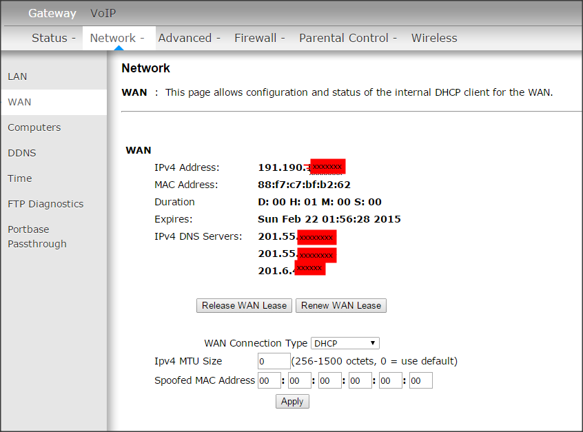 Aqui em Network tem opção de dhcp, static IP, L2TP (dhcp) e L2TP (static) mas acho que não pode alterar, tem que deixar como dhcp.
