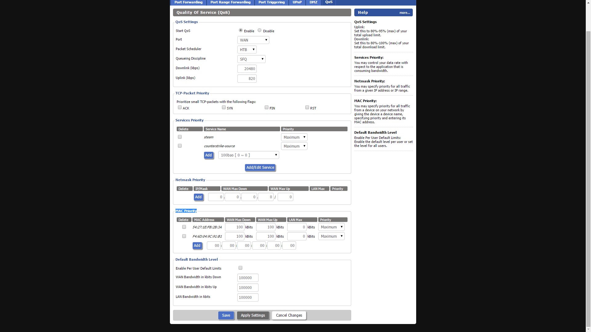 pesquisando na internet, achei que a Funcao QOS distribui de forma inteligente a banda da internet.... pois bem eu fiz alguns ajustes, mas nao sei se fiz certo ou nao