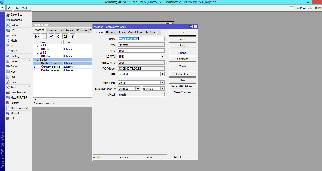 Eu consigo navegar, porem...somente pelo meu link 2. O que deveria ser pelo link1. Meu notebook esta conectado na porta 3 do MK. O problema é que não consigo mudar o máster_port da porta 3.