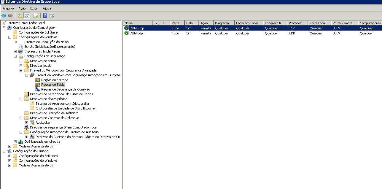 Olá pessoal SOCORRO já não sei mais oque eu faço para abir a porta 3389 no win server 2008 r2