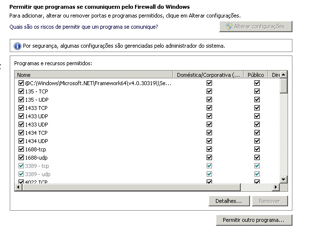 Rapaz eu dei uma olhada em tudo isso. o meu sistema é o WinServer 2008 SP1 R2 esta em Português, Olhei tudo isso segue os Prints.. ainda não conecta. Anexo 57461Anexo 57466Anexo 57465Anexo 57464Anexo 57463Anexo 57462 Anexo 57472Anexo 57471Anexo 57470Anexo 57469Anexo 57468Anexo 57473