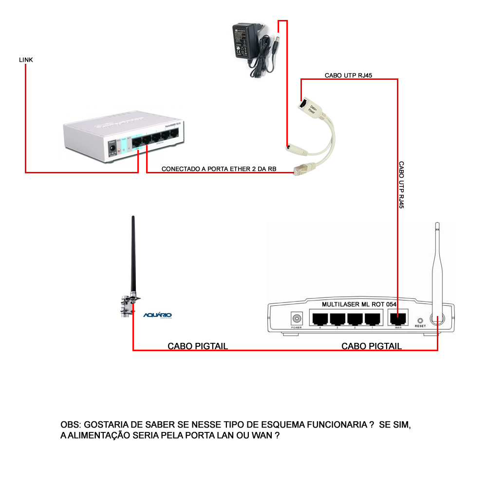 É o seguinte, encontrei aqui na minha sucata um roteador multilaser ( esse citado no post ) que testei e está em perfeito funcionamento, ele só funciona em modo G e quero usá-lo em um cliente rural e vou precisar colocar ele em cima de um mastro de 3 metros com 2 polegadas dentro de uma caixa hermética conectado a um omni de 12 DBi só para as 2 casas vizinhas a desse cliente terem internet também, como vai ficar um pouco alto e não queria usar um cabo RGC 58 com conectores tipo N e SMA grande demais para não ter muita perda ( pois não quero deixar o roteador dentro da residência ), colocarei um pigtail ligando a omni ao roteador, ou seja, não quero usar um extensão elétrica tão grande, queria mesmo saber se posso alimentar o roteador com uma fonte POE.