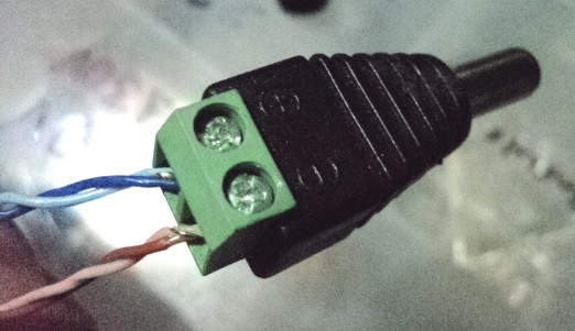 No cabo de rede. Você crimpar no padrão TIA ( http://www.ipmegapixel.com.br/blog/w...12/07/568a.png ) somente o par verde e o laranja. Aí sobra o par azul, que você parafusa no positivo do plug, e o par marrom, que você parafusa no negativo do plug.