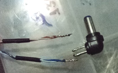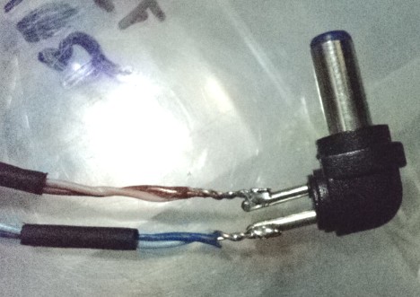 Ou pode procurar no comercio local um plug P4, a Multilaser provavelmente usa o comunzão de 5,5mm for fura, com furo de 2,1mm. Solda ele nos fios assim: