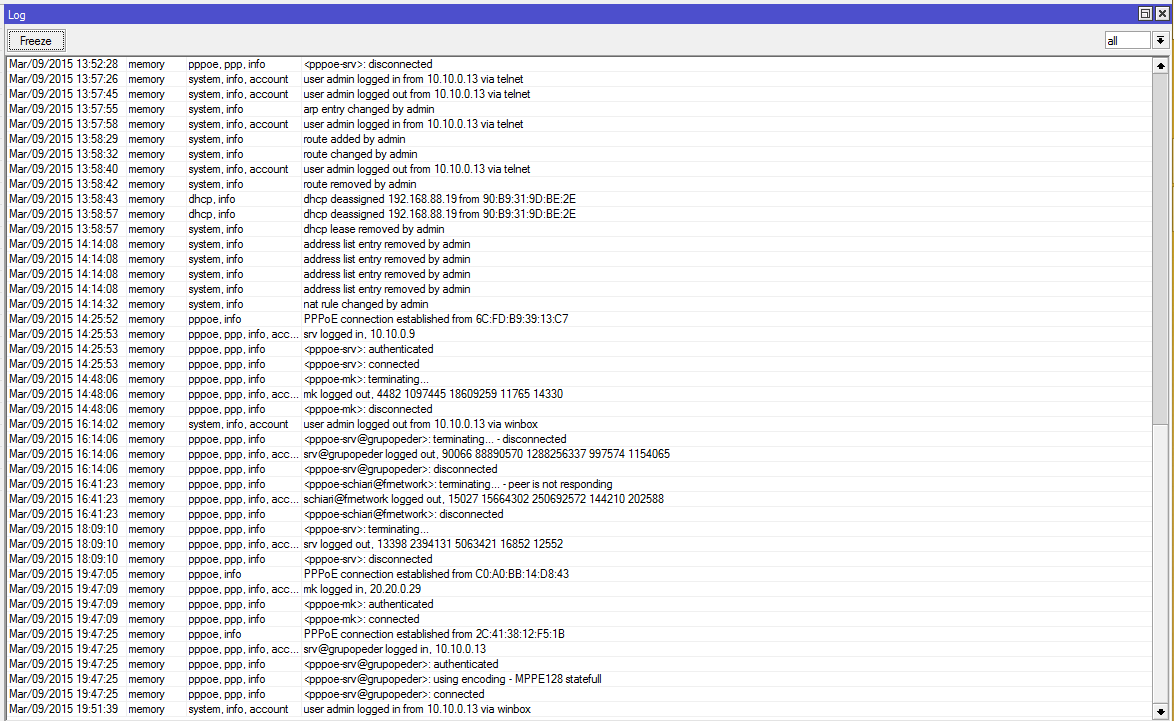 Ta vazia não! ela está com 16 conexões pppoe, a memoria dela tava em 4752 kib