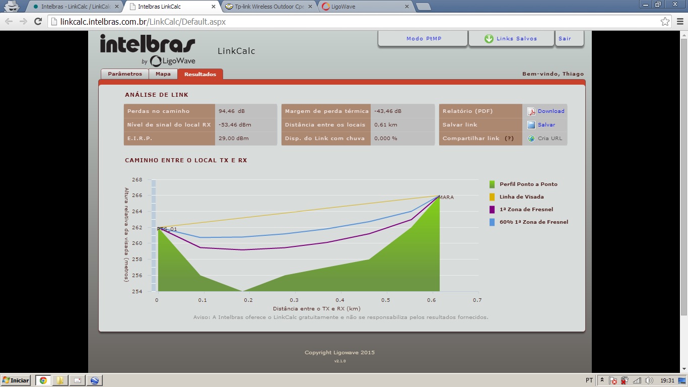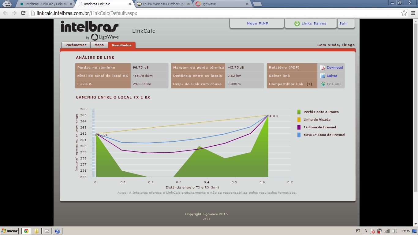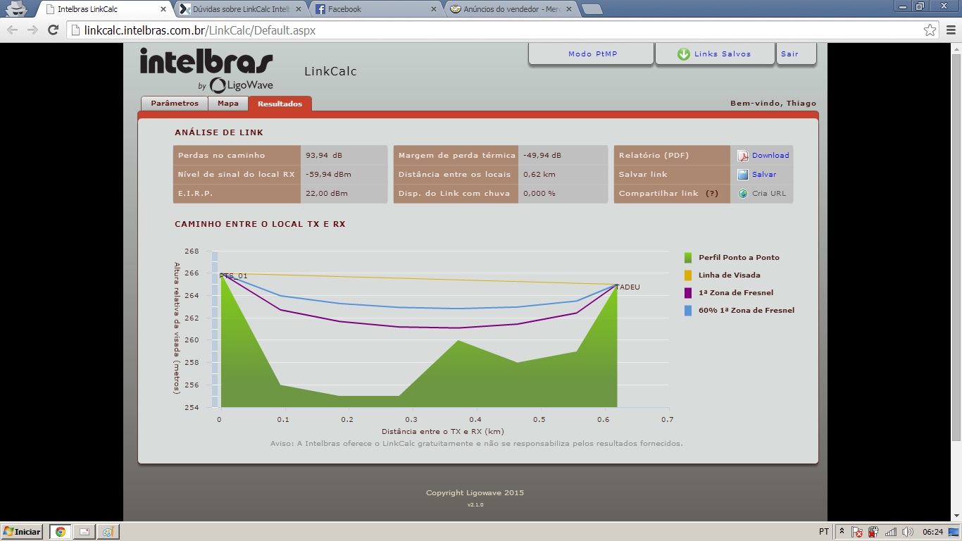 Abaixo seguem 2 exemplos do que preciso fazer para atender esses clientes... Aproveitando, digam-me se está bom ou preciso fazer alguma correção afim de melhorar os mesmos, adianto que um dos enlaces está com a 1ª zona de fresnel obstruída.