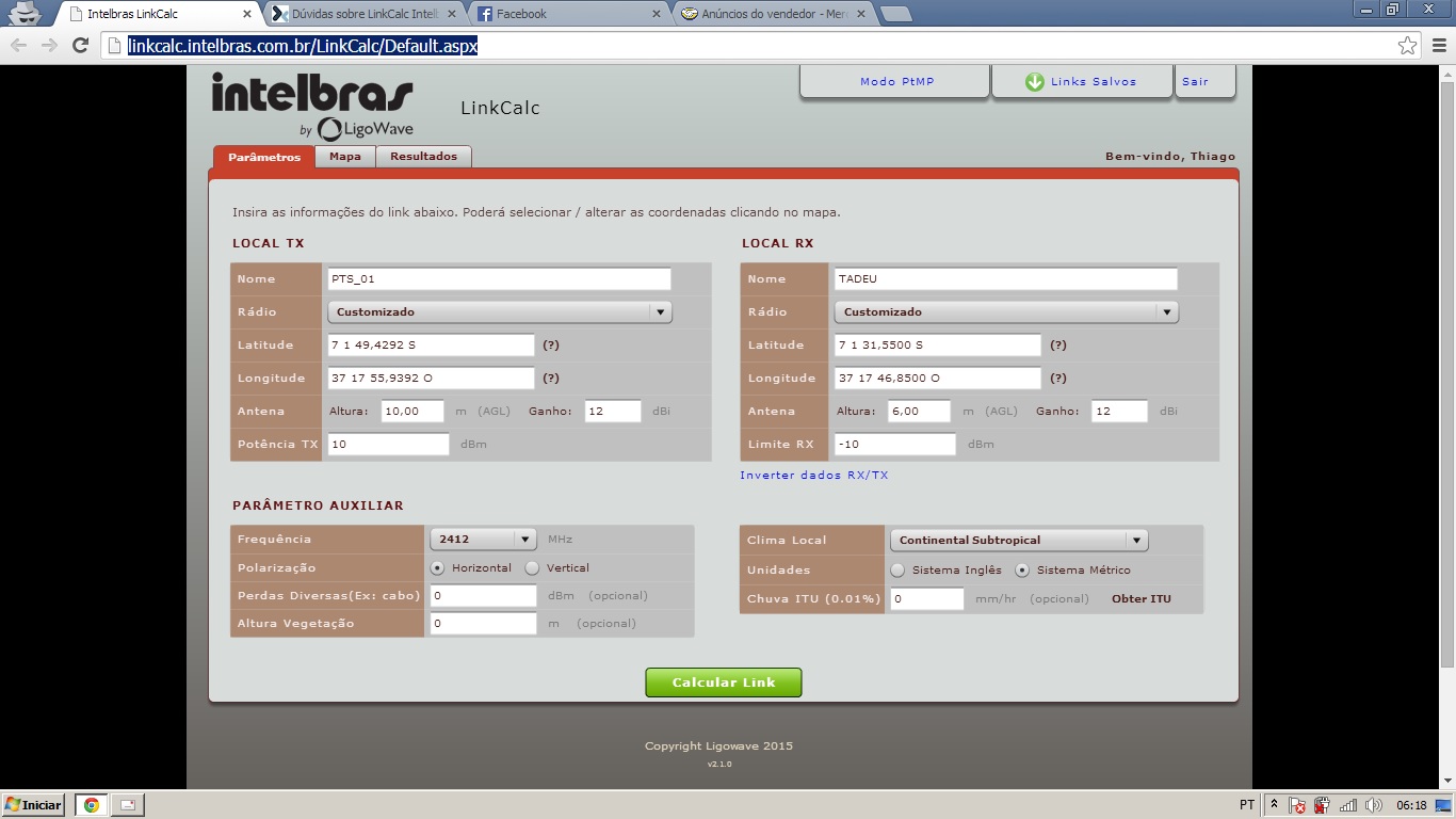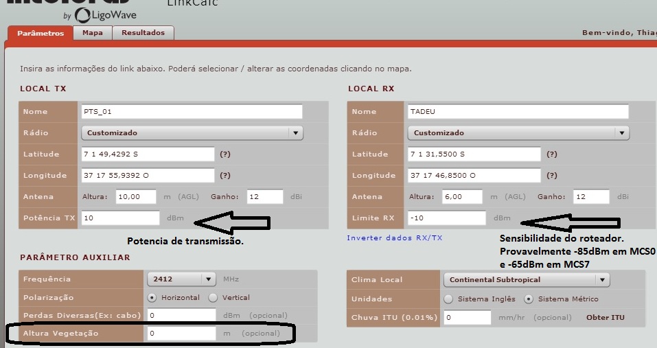 Sim, eu coloquei as alturas nos parâmetros sim, só tinha errado a altura de onde está a torre, que possui 10 metros de altura e antes tinha colocado 6 metros no parâmetros ( 4 metros laje + 6 torre ) ... Desculpas se não soube mim expressar bem a respeito de minha dúvida, na verdade eu queria somente saber se o cálculo em modo PTP serve também como base para o modo PtMP, só para conferência da zona de fresnel ? E se os cálculos dos parâmetros estão bons ou não ( tipo: nível de sinal do local RX, margem de perda térmica, etc ) ?