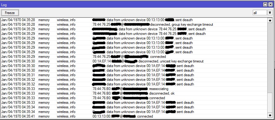 Tenho um provedor com uma RB433AH e 2 Cartões R52h e em um desses cartoes, todos os clientes se desconectam de uma vez e reconectam denovo, está acontecendo do nada e toda hora, o ping tambem está alto.