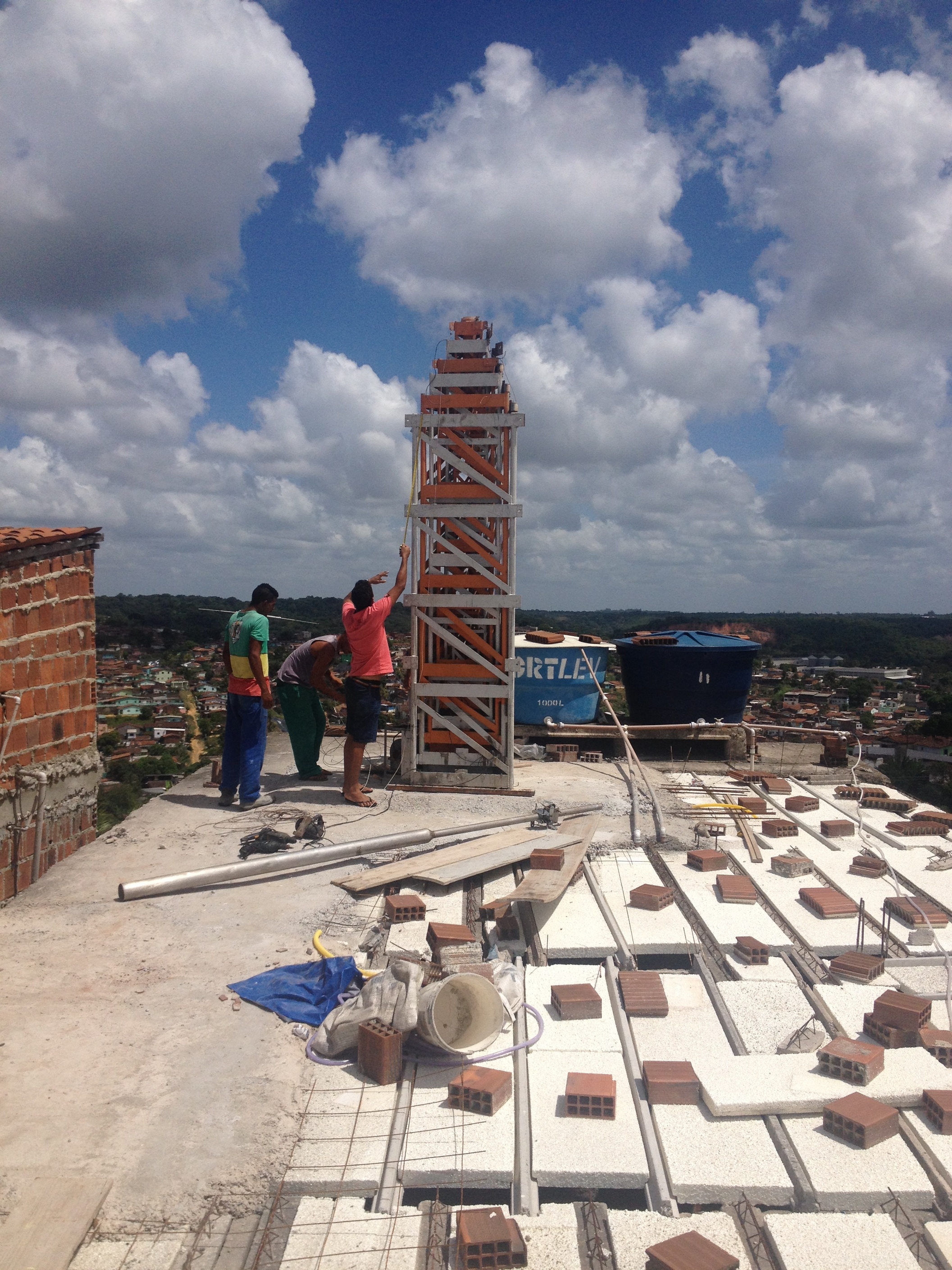 (Tubo quadrado pra subir com roldana seria uma boa, mas não encontro a menos de uns 1000Km daqui (Já redondos tem aos montes), o que significa o dobro do preço do tubo redondo, fora que roldanas laterais não existem a venda, teria que mandar torneiro fazer de tecnil (Aí o preço sobe muito, manofatura sai caro), eu estou tirando torre de 30m de casa e vou colocar um sistema com roldanas, mas por falta de insumos pra comprar vou ter que usar tubos redondos, e vou usar 6m porque o tubo a venda é de 6m, afinal se eu for consultar um eng. (O mais proximo que meche com esse tipo de estrutura fica a 400Km) ele vai sugerir coisas absurdas tipo 4,8m (Aí o que eu faço com os 1,2m que sobram do tubo de 6m?))