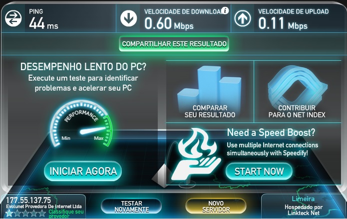 Essa é a qualidade da minha internet a rádio de 5MB/s no horário de pico