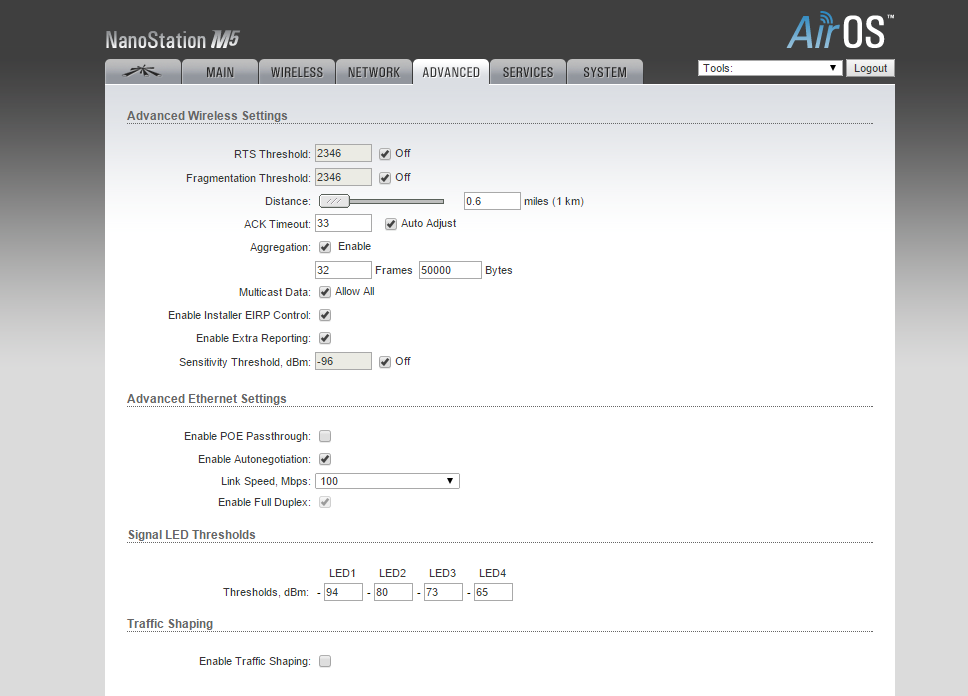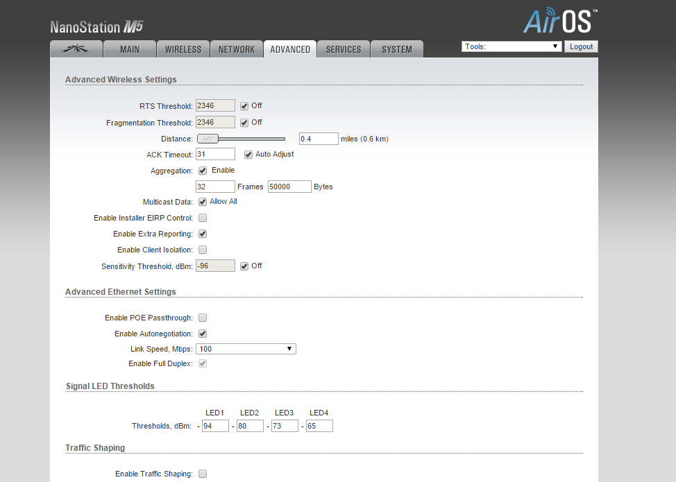 E coloca certinho o país brasil, não necessariamente o pais EUA tem mais canais ou outras potencias. Na verdade é mais facil você setar um país cujo limite legal de potencia é MENOR que o brasil. Se mantenha entre 5,7 e 5,8GHz pois nessa faixa com o país brasil você pode ter potencia maior. Mas potencia alta não vence obstrução (Nem na zona de fresnel!), sem zona de fresnel limpa é melhor baixar a potencia e aumentar o ack-timeout pra deixar menos ruim (Não tem como ser bom com obstrução, não tem potencia alta que resolva, subir a antena uns 4m num mastro é mais simples e funcional que trocar de país pra cometer o CRIME de usar potencia alta em frequencia tipo 5,1 a 5,6GHz. O espectro está poluído por conta dessas criancisses de sair metendo potencia alta ou usando canal não-permitido pra conectar em 20 ou 40MHz quando a banda passante necessaria mal passa de 10Mbps, que com datarate decente pode ser conseguida com 10MHz de largura, com potencia muito mais baixa)