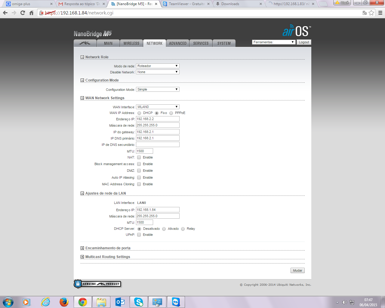 Re: Dúvida PTP 3 KM com NanoBridge M5