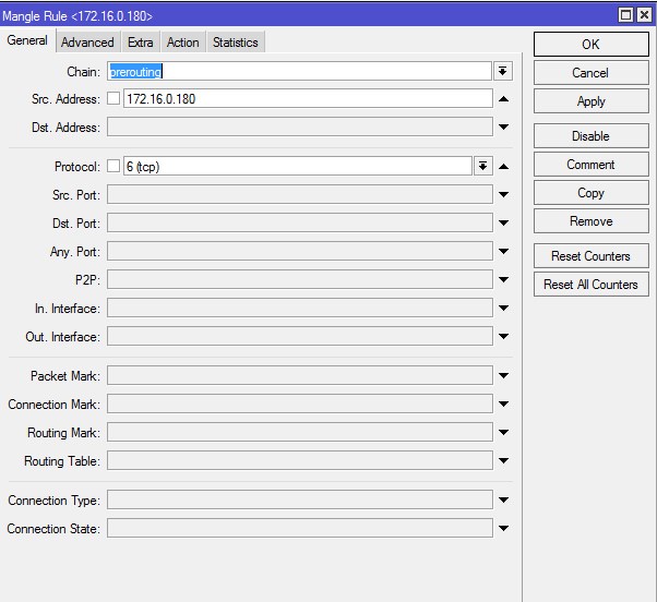 /ip firewall mangle chain=prerouting action=mark-routing new-routing-mark=LINK_1 passthrough=no src-address=10.1.1.0/24