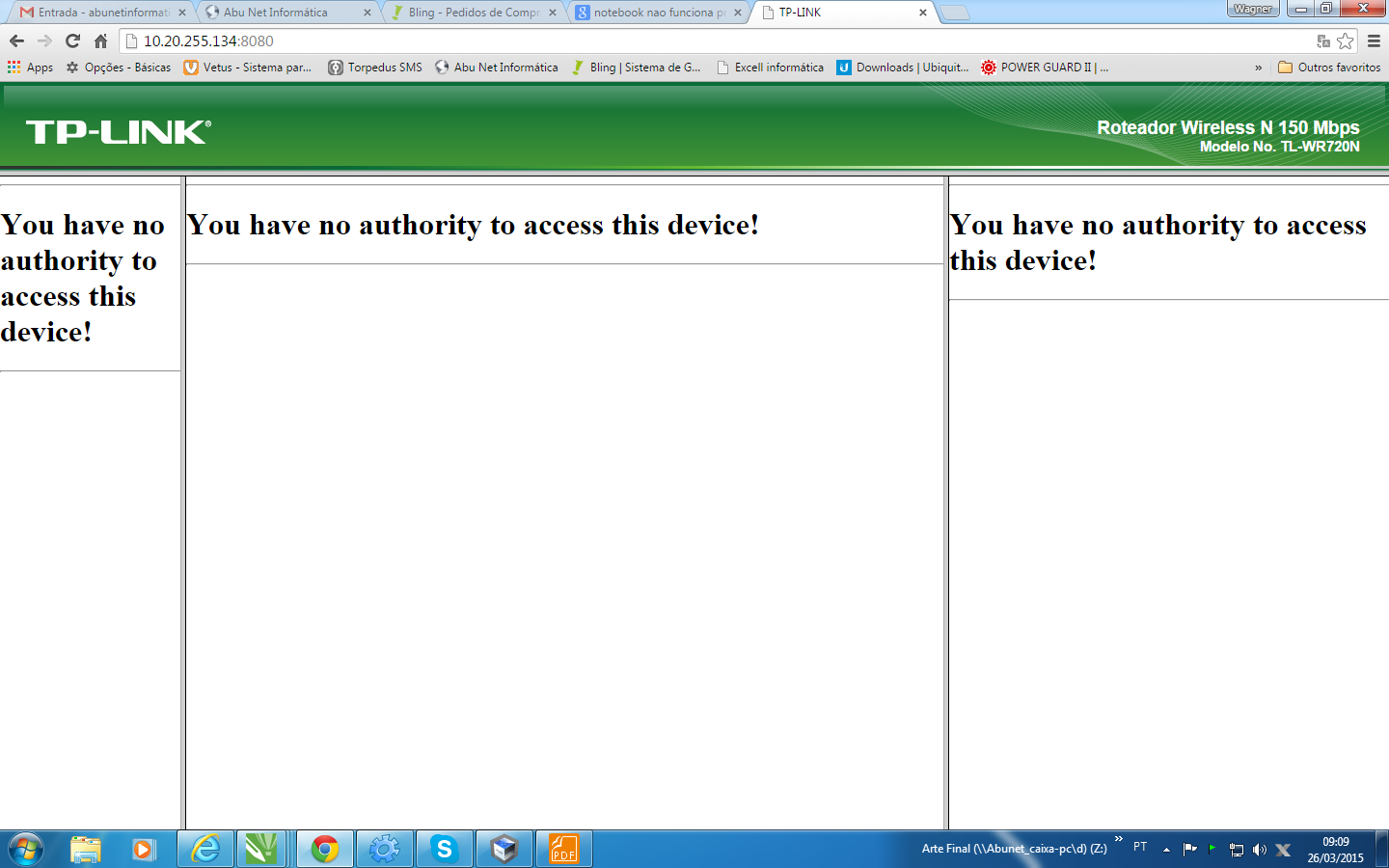 pela rede, quando eu acesso o Roteador até pede a senha mas retorna a seguinte mensagem.