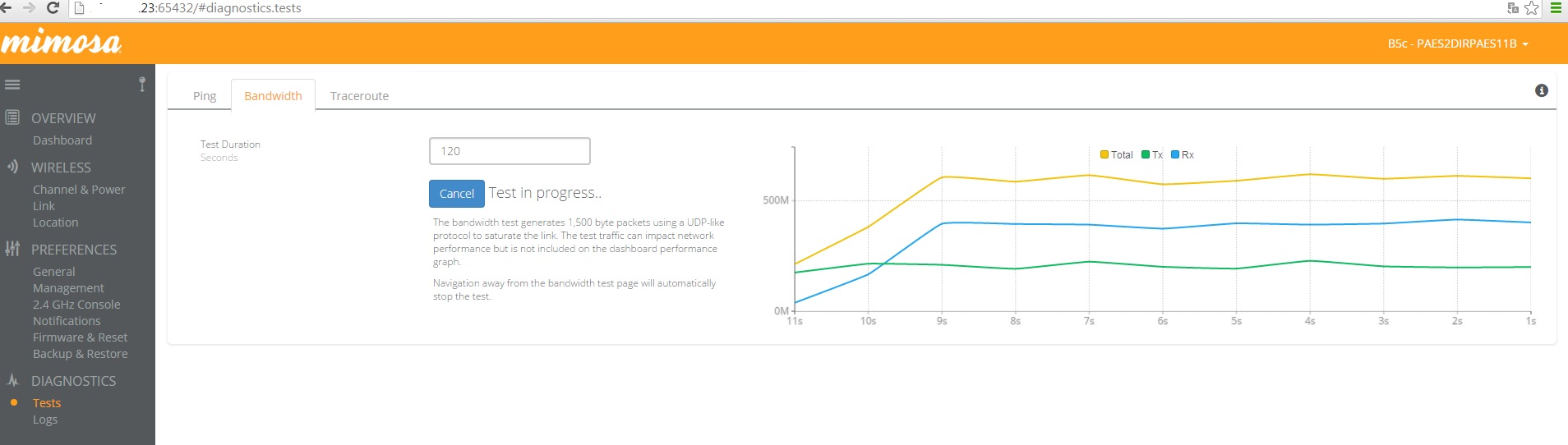 Esse rádio substituiu um par de rocket M5 que nos dava apenas 80Mb de troughput.