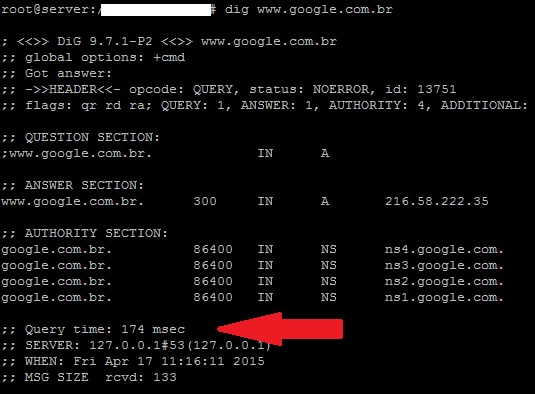 E agora quem for consultar esse mesmo domínio tem esse tempo de resposta: