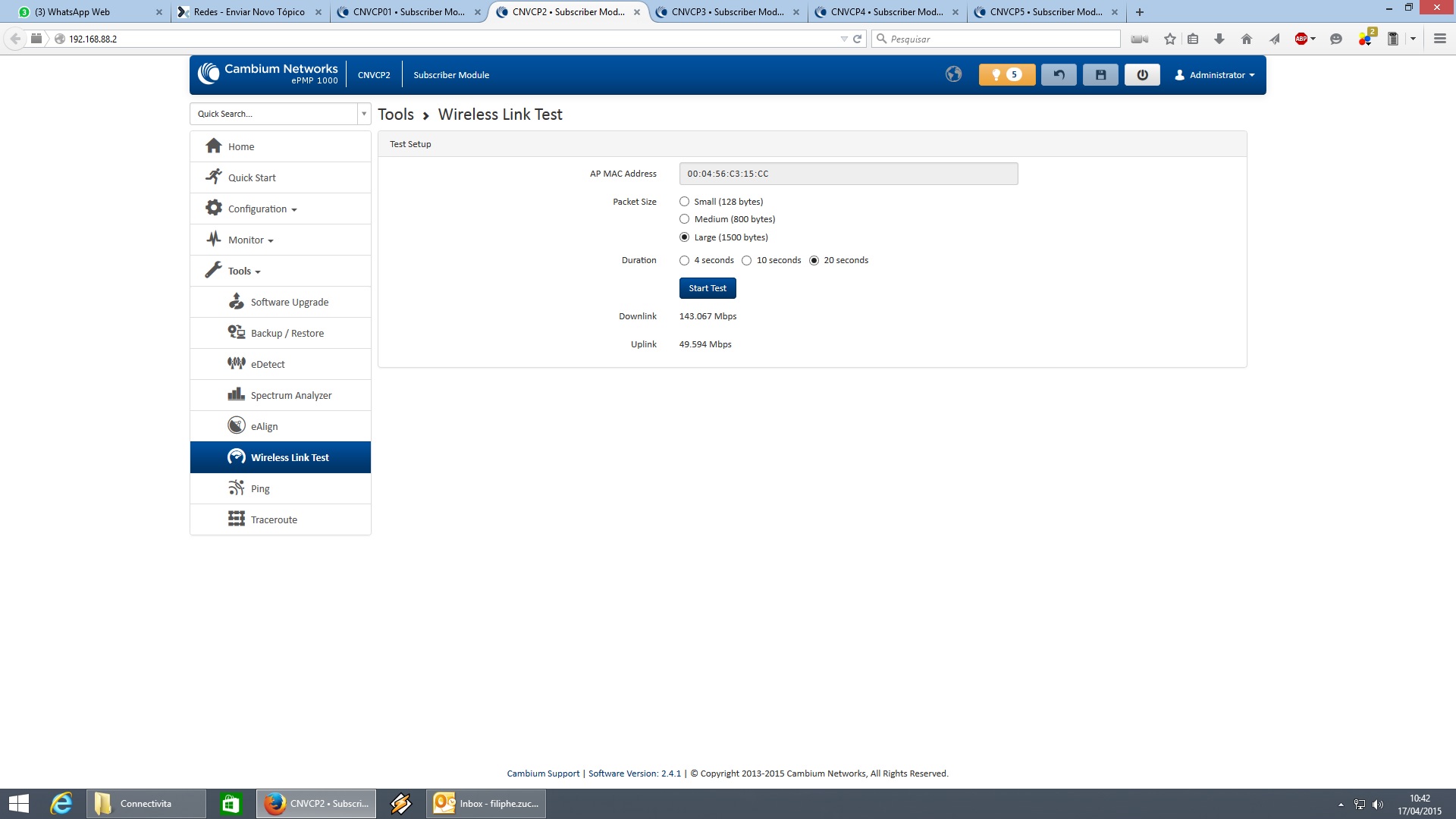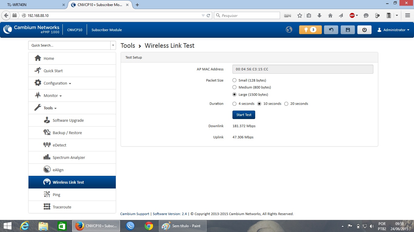 Ahhh Zucchi mas o link test do rádio não vale. Todos queremos um SpeedTest.