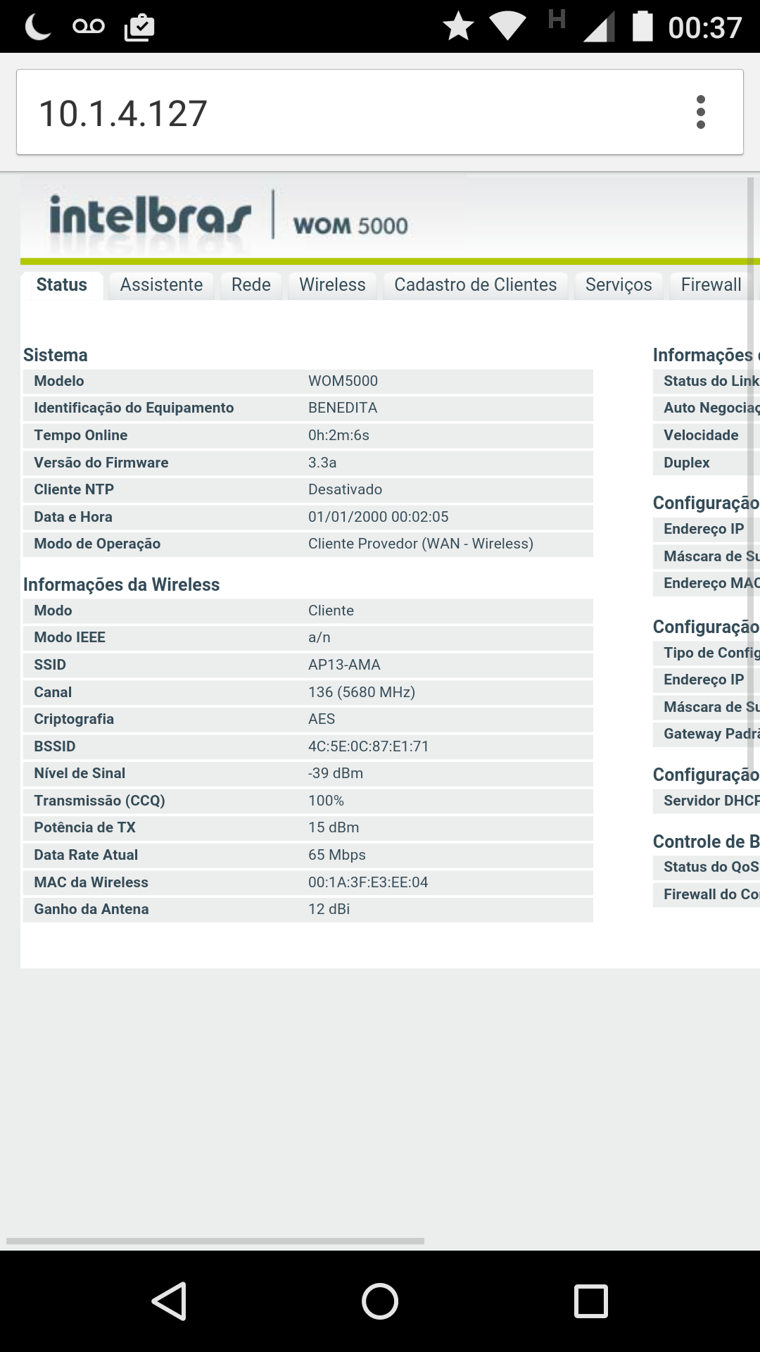 Para concluir segue em anexo um exemplo de um cliente que esta a uma 500m da torre onde o sinal dele com esse mesmo wom5000 nas basestations era de -70.