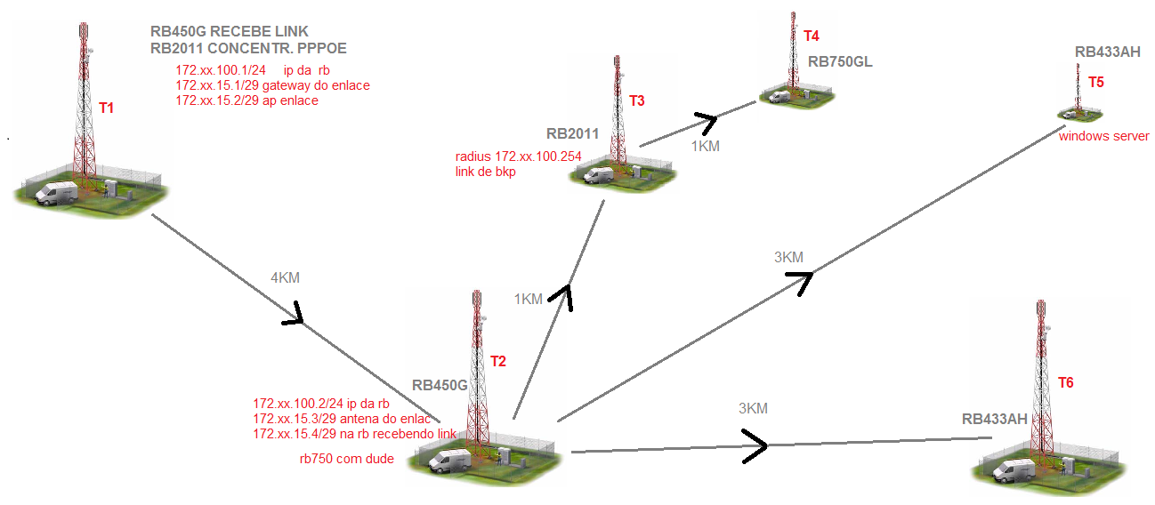 inicialmente eu só tinha a T3 e T4.... sendo assim inicei com o link adsl que hoje é apenas bkp, e é o local onde atualmente estou concentrando os clientes.... nas torres T1 e T2 no momento é só transporte do link e as outras nao tem clientes ainda