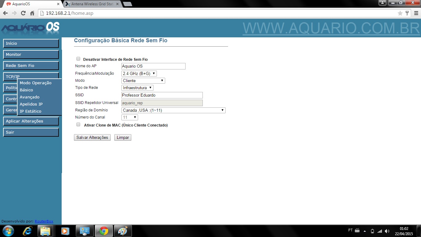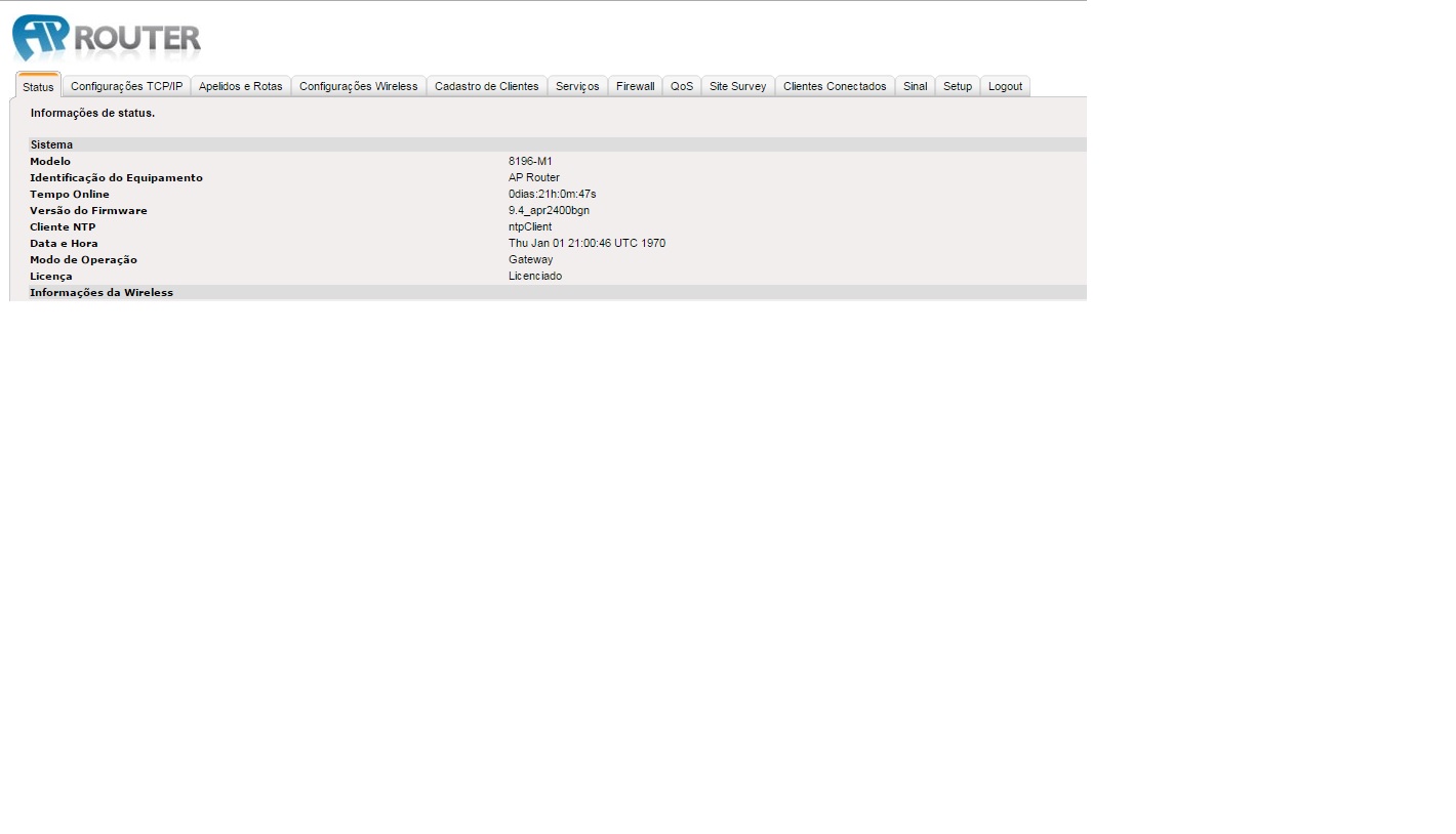 Estou com essa antena wireless Grid Station 2425 tentando fazer a conexão dela em um AP router deste que recebo o sinal de conexão a internet, tenho também uma antena aquário 2510 ligada a esse AP router onde que todas as antenas são cadastrada por MAC e fazer conexão normalmente.